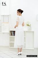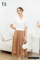 • Đường may tinh tế, chau chuốt, điểm nhấn đính hoa eo nổi bật, điệu đà
