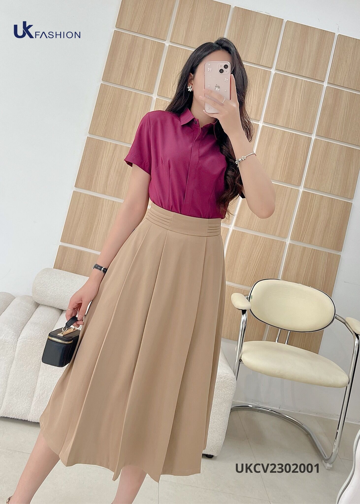 Chân Váy Xòe UK FASHION Kiểu Dáng Trẻ Trung Thanh Lịch Chất Vải Nhập Hàn Cao Cấp Không Nhăn Xù UKCV2302001