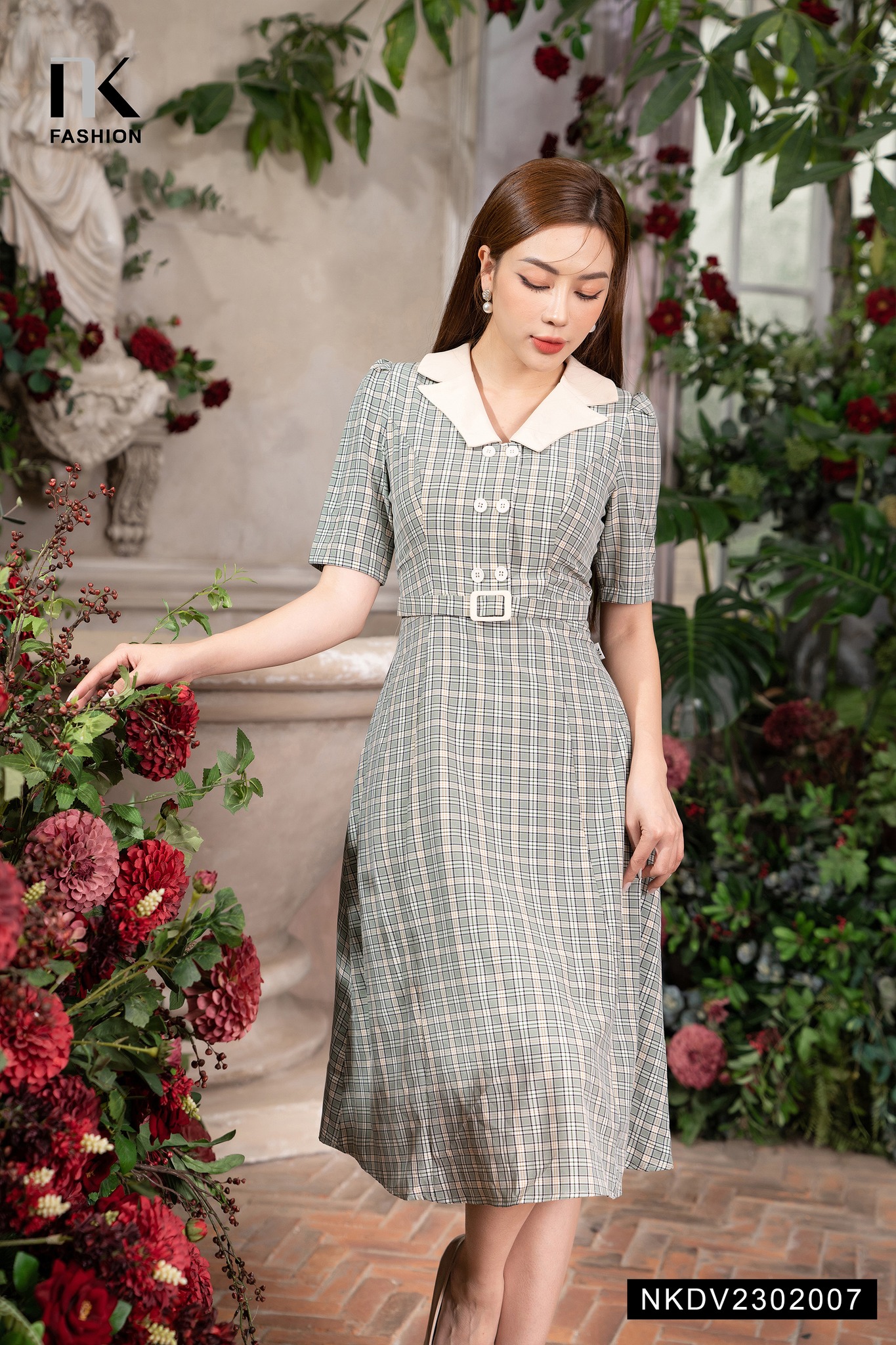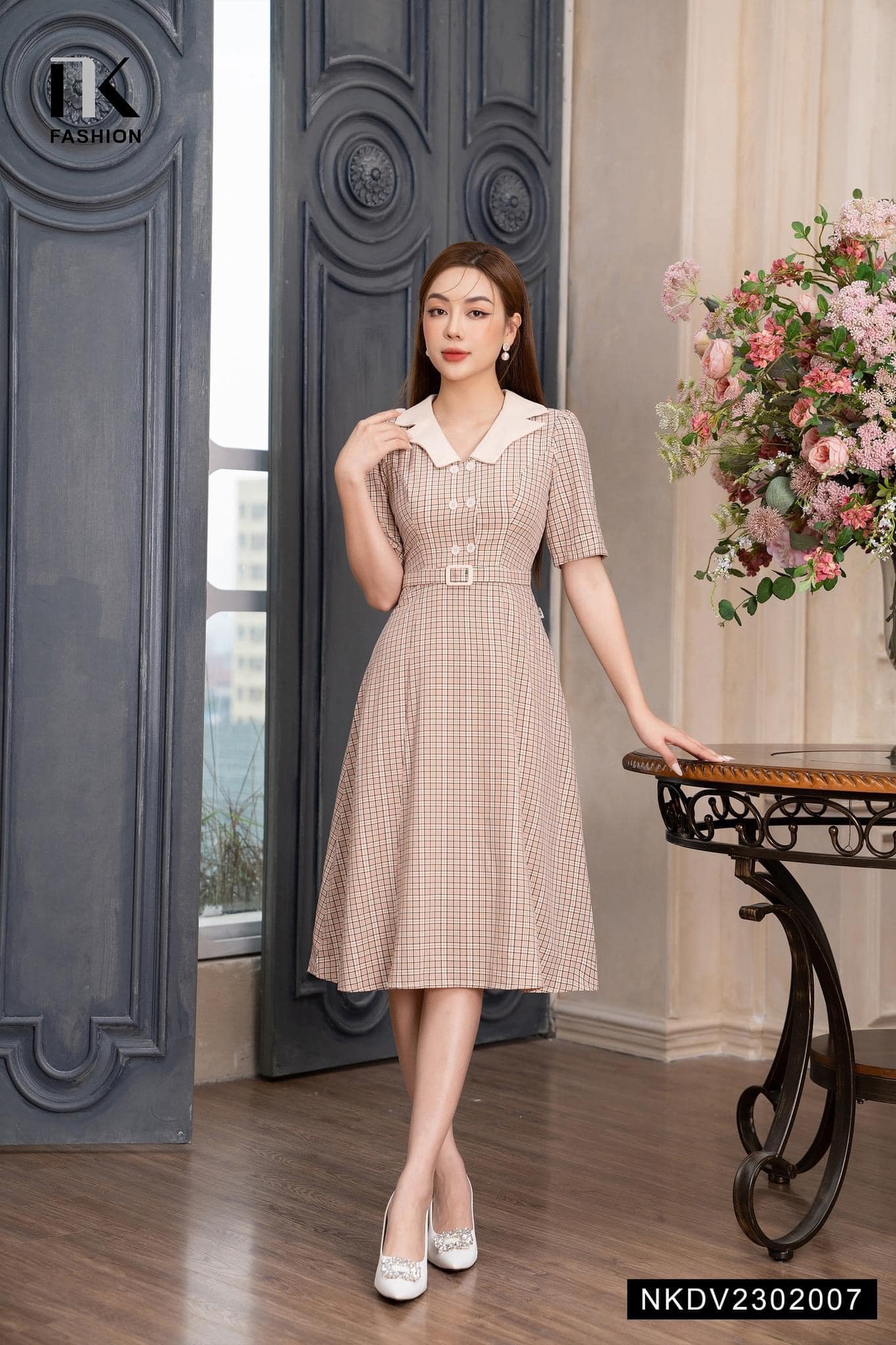 Một thiết kế đầm kẻ duyên dáng với bản phối vô cùng thanh lịch và nữ tính.