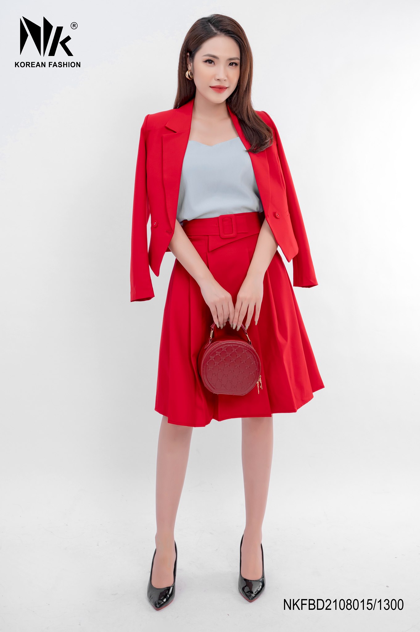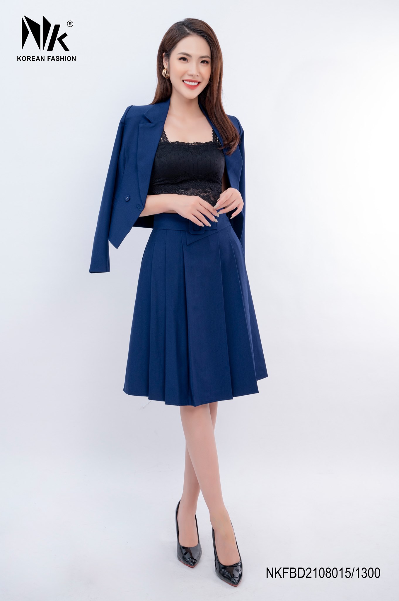 - TÊN SẢN PHẨM: Set Vest Dài Tay Kết Hợp Chân Váy Xếp Bọc Đai Eo