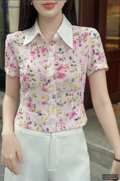Sơ mi hoa bo gấu phối cổ rực rỡ, gọn gàng UKSM2505016 KHUYẾN MÃI - ƯU ĐÃI