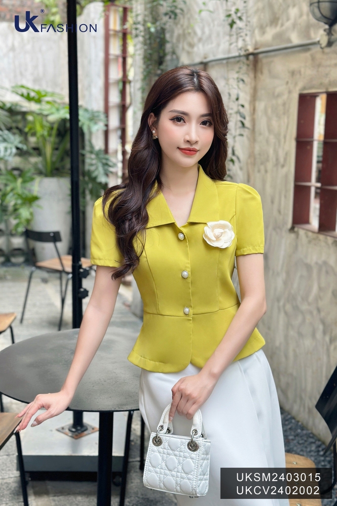 + Áo thiết kế cổ chữ V, tay hơi phồng thêm phần thắt eo tôn dáng. Áo có màu sắc nhã nhặn rất phù hợp với chị em trong môi trường công sở, văn phòng