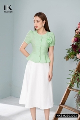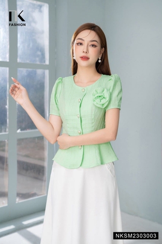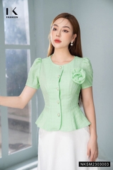 Một thiết kế sơ mi peplum trong 2 gam màu xanh, trắng với chất liệu vải cao cấp nhập khẩu từ Hàn sẽ khiến nàng mê đắm ngay từ lần đầu chạm mặt.