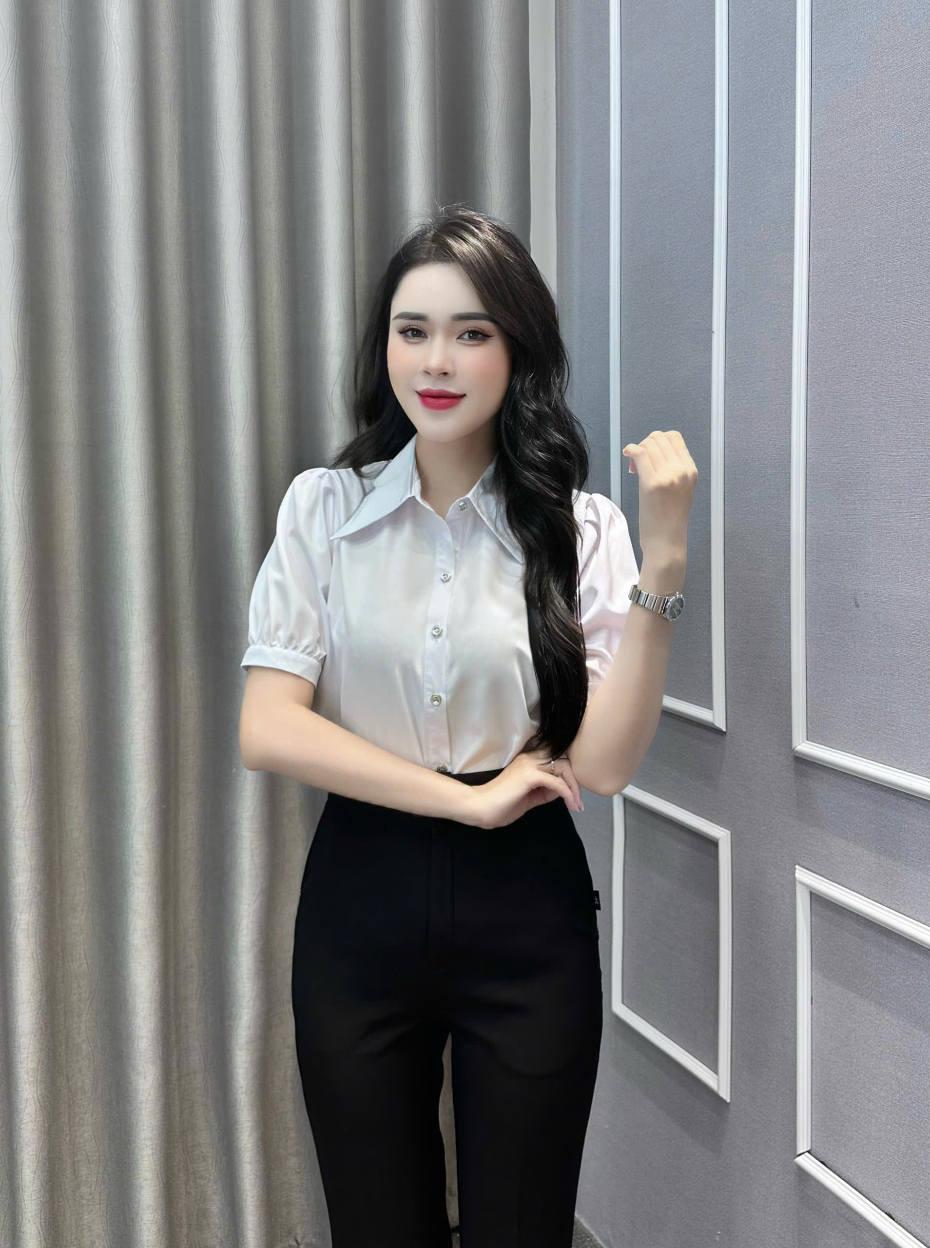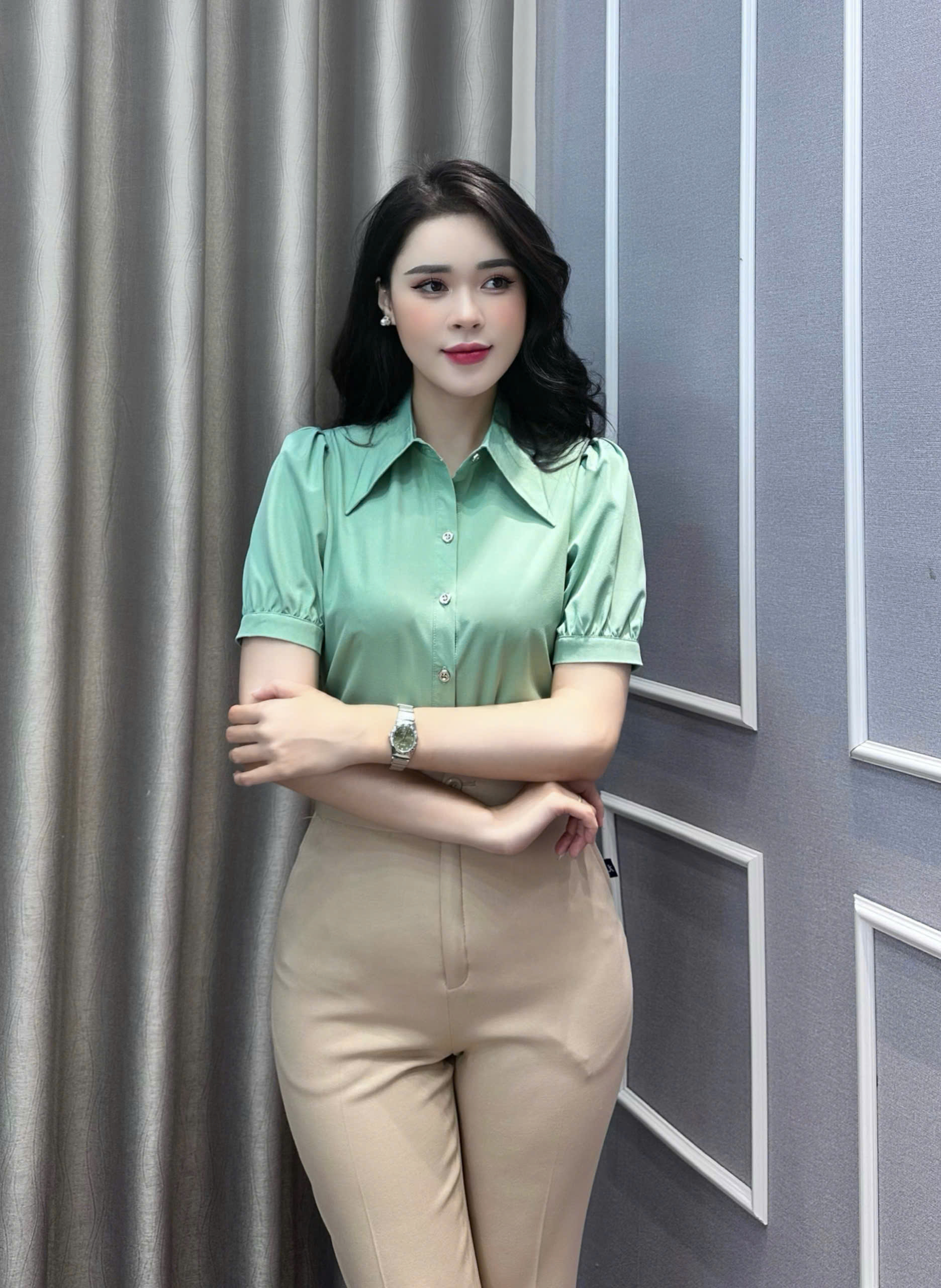 Áo sơ mi có màu sắc nhã nhặn rất phù hợp với chị em trong môi trường công sở, văn phòng