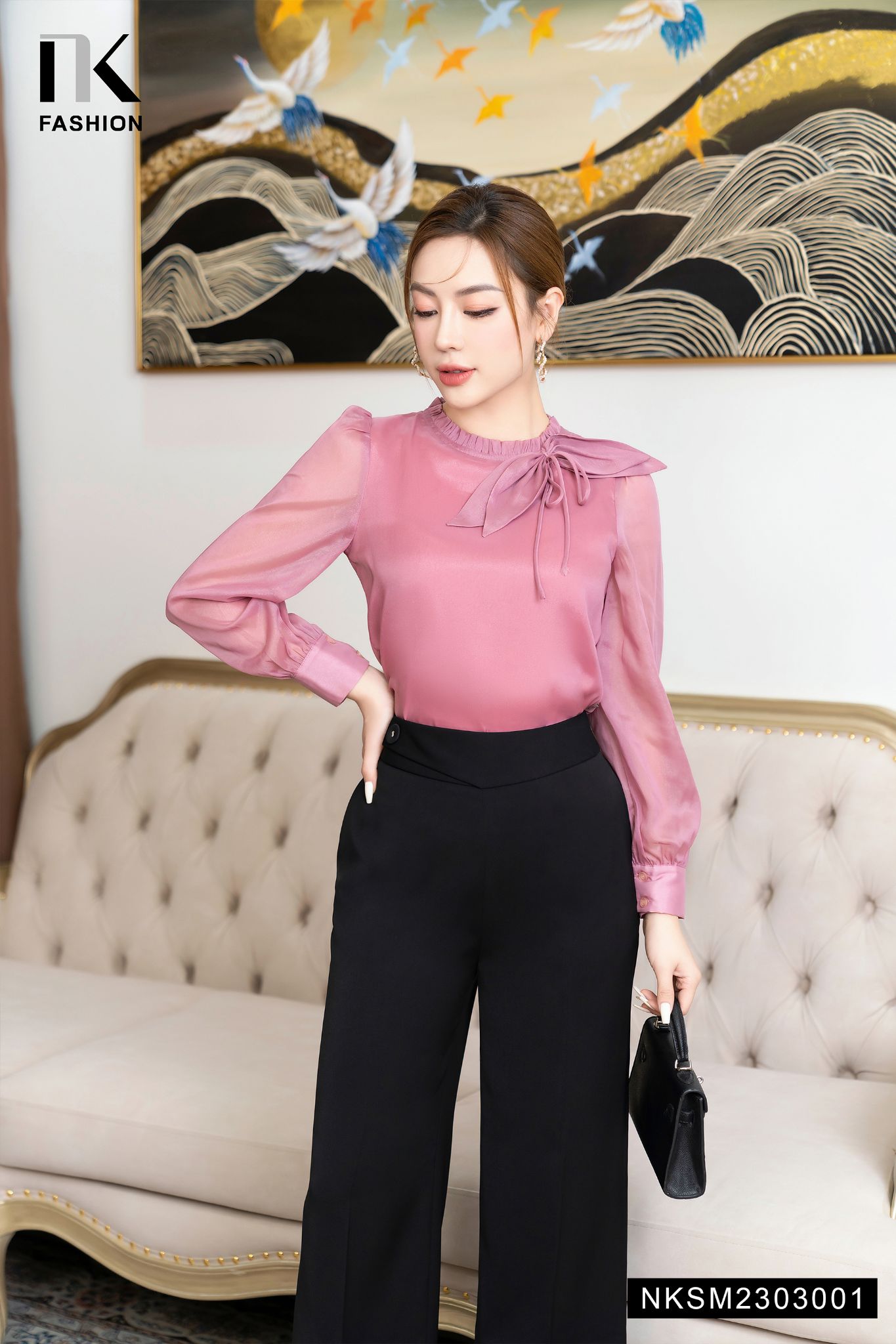 • Áo sơ mi thiết kế dài tay nơ cổ tiểu thư, nữ tính, duyên dáng cho mọi cô gái